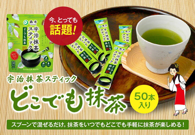 宇治抹茶スティック どこでも抹茶 【お徳用】50本入り [スプーンで混ぜるだけ。抹茶をいつでもどこでもお手軽に]Instant Uji Matcha パフェや緑茶割りにも(テレビで話題 「粉末緑茶」「緑茶うがい」「口内フローラ」「カテキン」)水出しOK