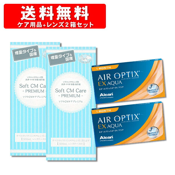 エアオプティクスEXアクア(O2オプティクス)×2箱とソフトCMケアプレミアム×2本 洗浄液 エアーオプティクス 【コンタクトレンズエアオプティクスEXアクア1month】