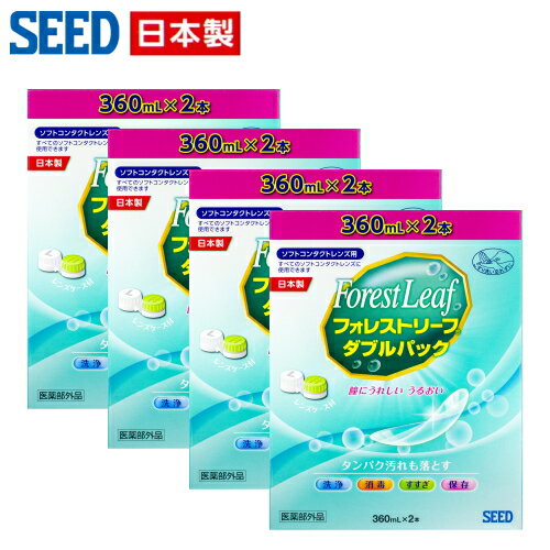 【送料無料】日本製 界面活性剤フリー シード フォレストリーフ ダブルパック 360mlx2本入り 4箱 ソフトコンタクトレンズ用 洗浄液 消毒 すすぎ 保存液